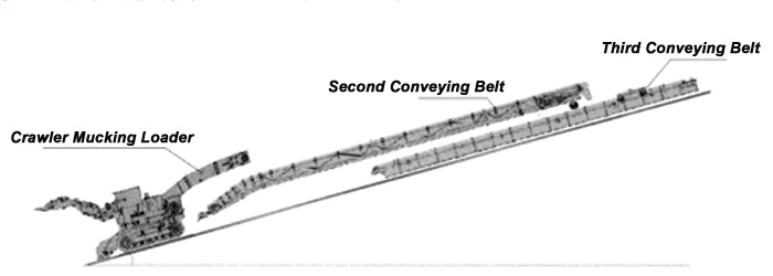 2. A segunda correia transportadora pode recuar usando a locomotiva, durante a explosão da mina.