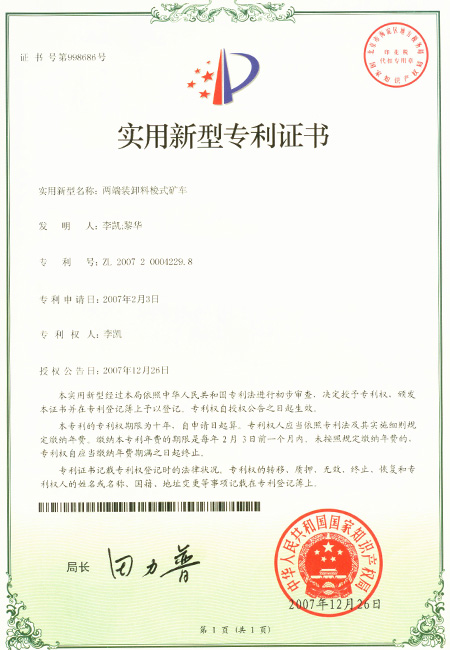 № Патент № Название Тип патента Владелец Дата получения 1 ZL 2009 1 0115993.6 Гусеничный тоннельный экскаватор с комбинированным скреперным конвейером Патент на изобретение Li Kai 18 мая 2011 2 ZL 2009 1 0145357.8 Экскаватор типа Haggloader для тоннельных работ Патент на изобретение Li Kai 27 апреля 2011 3 ZL 2009 1 0145353.X Тоннельный экскаватор типа Haggloader для угольных шахт Патент на изобретение Li Kai 15 июня 2011 4 ZL 2009 2 0003411.0 Транспортировочный механизм тоннельного экскаватора Патент на промышленную модель Li Kai 4 ноября 2009 5 ZL 2008 2 0137421.9 Вариативный плунжерный насос тоннельного экскаватора Патент на промышленную модель Li Kai 10 июня 2009 6 ZL 2008 2 0137422.3 Масляный бак тоннельного экскаватора Патент на промышленную модель Li Kai 10 июня 2009 7 ZL 2009 2 0003413.X Транспортировочный конвейер тоннельного экскаватора Патент на промышленную модель Li Kai 4 ноября 2009 8 ZL 2009 2 0003412.5 Механизм трансмиссии транспортировочного конвейера тоннельного экскаватора Патент на промышленную модель Li Kai 9 декабря 2009 9 ZL 2009 2 0003414.4 Мультифункциональный ковш тоннельного экскаватора Патент на промышленную модель Li Kai 9 декабря 2009 10 ZL 2009 2 0141619.9 Мультифункциональный тоннельный экскаватор Патент на промышленную модель Li Kai 9 декабря 2009 11 ZL 2007 2 0177135.0 Шасси арочно-мостового типа Патент на промышленную модель Li Kai 13 августа 2008 12 ZL 2009 2 0141618.4 Усовершенствованная гусеница Патент на промышленную модель Li Kai 9 декабря 2009 13 ZL 2008 2 0137431.2 Передняя часть шахтной челночной вагонетки Патент на промышленную модель Li Kai 15 июля 2009 14 ZL 2008 2 0113045.X Тяговое устройство шахтной челночной вагонетки Патент на промышленную модель Li Kai 10 июня 2009 15 ZL 2007 2 0004229.8 Центральный шпиндель ходовой тележки шахтной челночной вагонетки Патент на промышленную модель Li Kai 10 июня 2009 16 ZL 2007 2 0004229.8 Двухсторонняя разгрузка шахтной челночной вагонетки Патент на промышленную модель Li Kai 26 декабря 2007 17 ZL 2006 2 0142485.9 Колесно-рельсовый передвижной бетоносмеситель с устройством активной подачи материала Патент на промышленную модель Li Kai 5 декабря 2007 18 ZL 2008 2 0115730.6 Буферная конструкция передвижного бетоносмесителя Патент на промышленную модель Li Kai 10 июня 2009 19 ZL 2008 2 0129353.1 Ходовая конструкция передвижного бетоносмесителя Патент на промышленную модель Li Kai 10 июня 2009 20 ZL 2008 2 0113047.9 Передвижной бетоносмеситель (колесно-рельсовый) Патент на промышленную модель Li Kai 10 июня 2009 21 ZL 2008 2 0130523.8 Наклонный спиралевидный бетоносмесительный барабан Патент на промышленную модель Li Kai 10 июня 2009 22 ZL 2012 2 0087543.8 Фиксированная портальная рама тоннельного экскаватора Патент на промышленную модель Li Kai 21 ноября 2012 23 ZL 2011 2 0293870.4 Резиновая гусеничная лента тоннельного экскаватора Патент на промышленную модель Li Kai 15 августа 2011